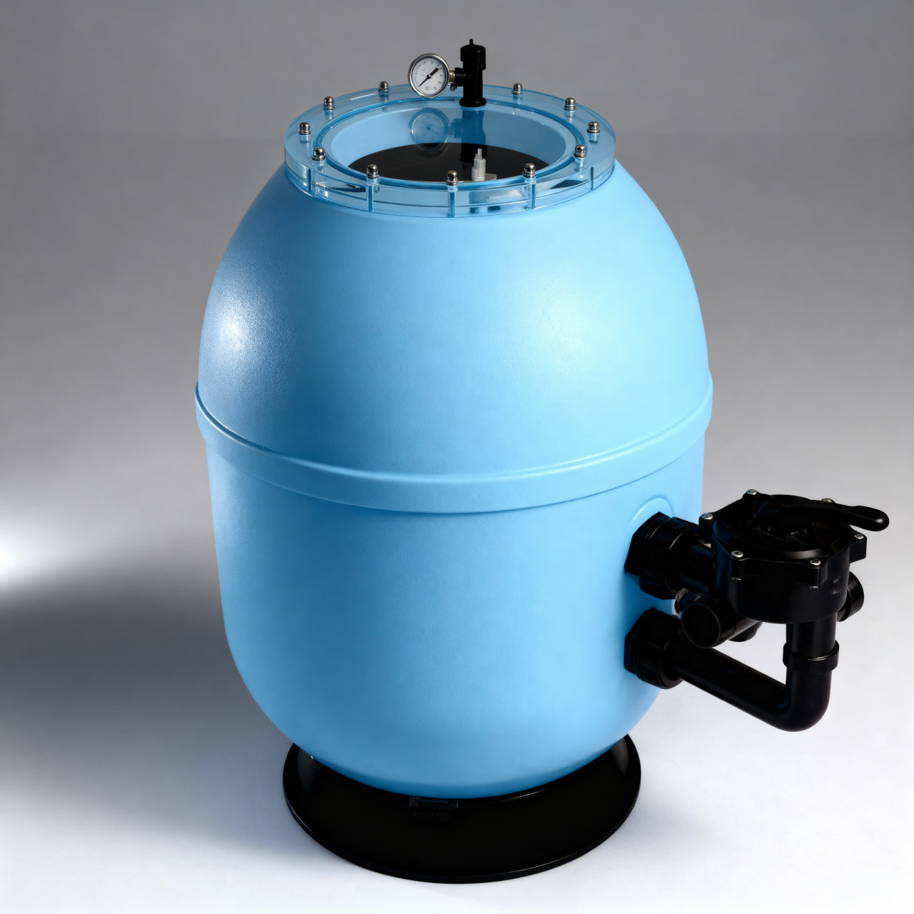 Песочный фильтр премиум-класса для средних и больших бассейнов. Корпус из метакрилата, стабильный поток, высокая пропускная способность.